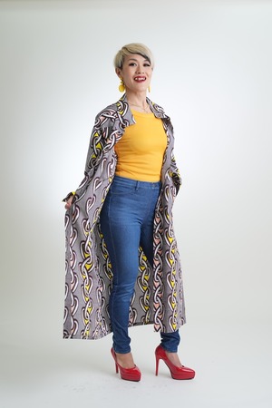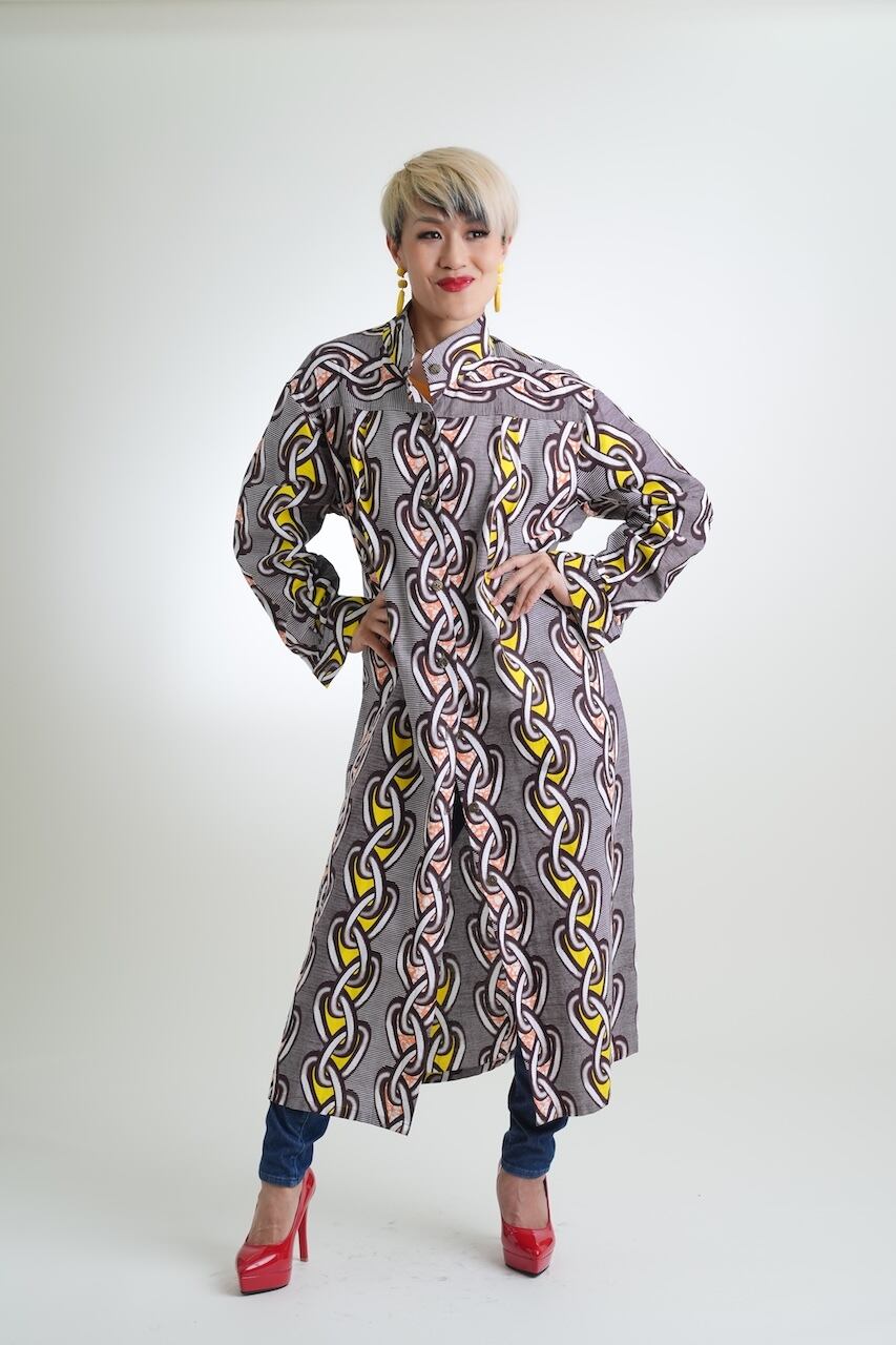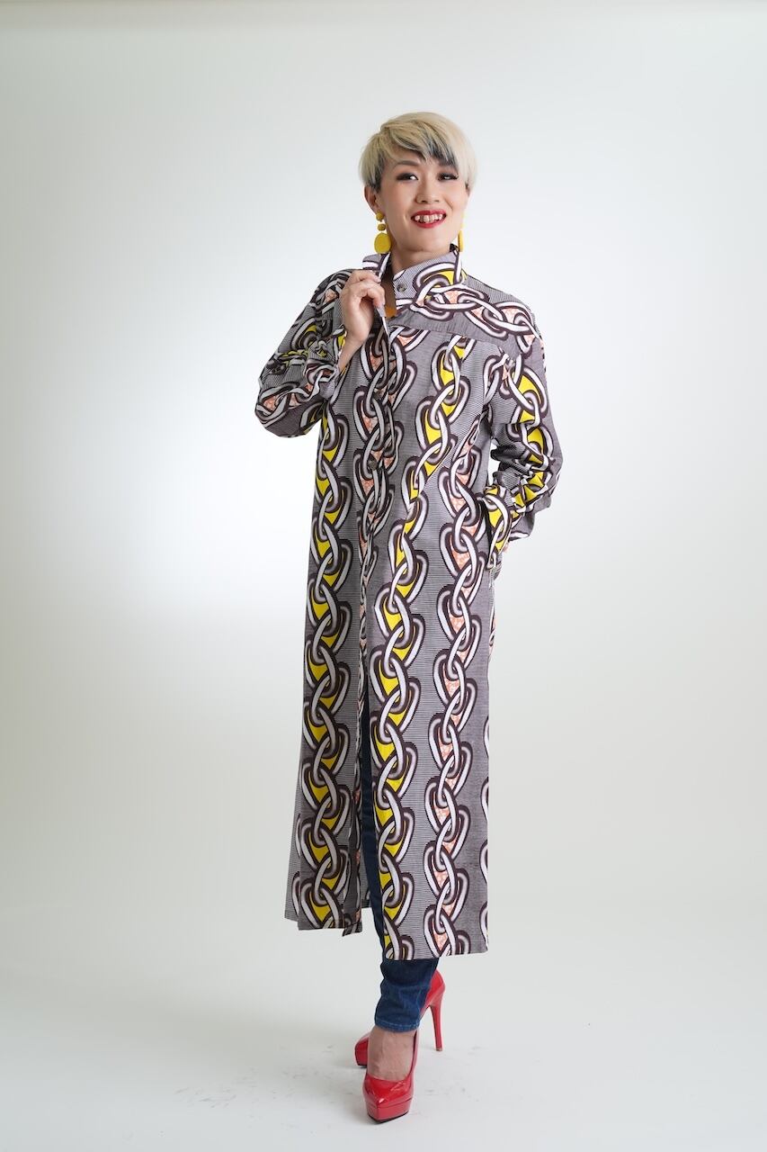 ボタンを閉めてワンピースに。ボタンを開けてコートとしても。