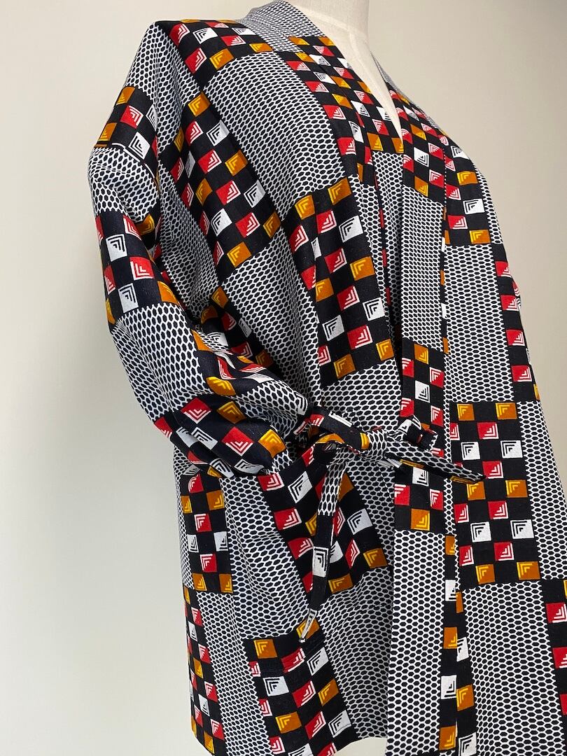 作業着としても、ちょっと上っぱりとしても、和のテイストとアフリカ布のコラボがおしゃれ!